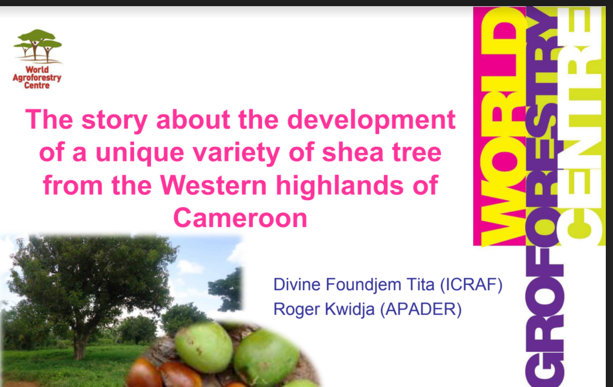 The presentation from the World Agroforestry Centre (ICRAF) at Shea 2015 presents an overview of the shea industry in Cameroon, including tree characteristics, butter parameters, cooperative development, and access to market.